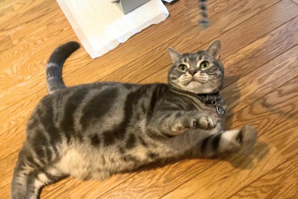 最初は目で追う程度でしたが、すぐにスイッチが入り、おなかを見せながらおもちゃにじゃれつくほど熱中してくれました。